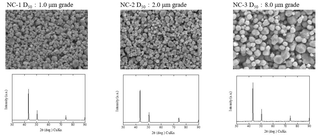 高い耐酸化性を有しており、1µmから8µmまでの粒径制御が可能である。